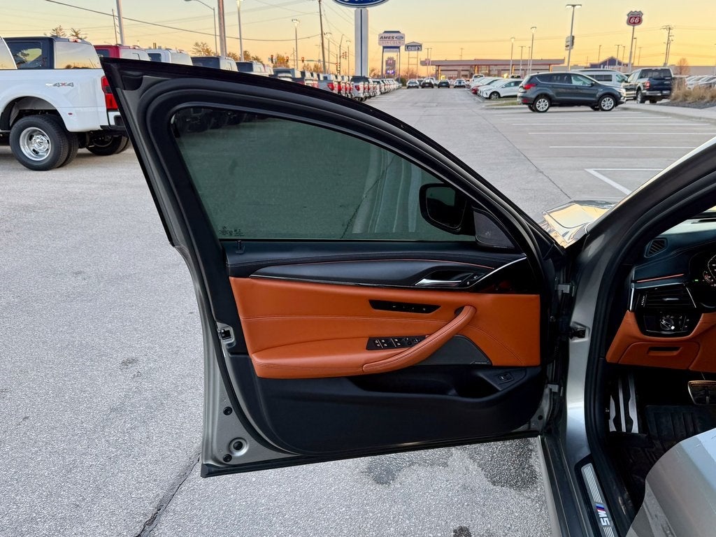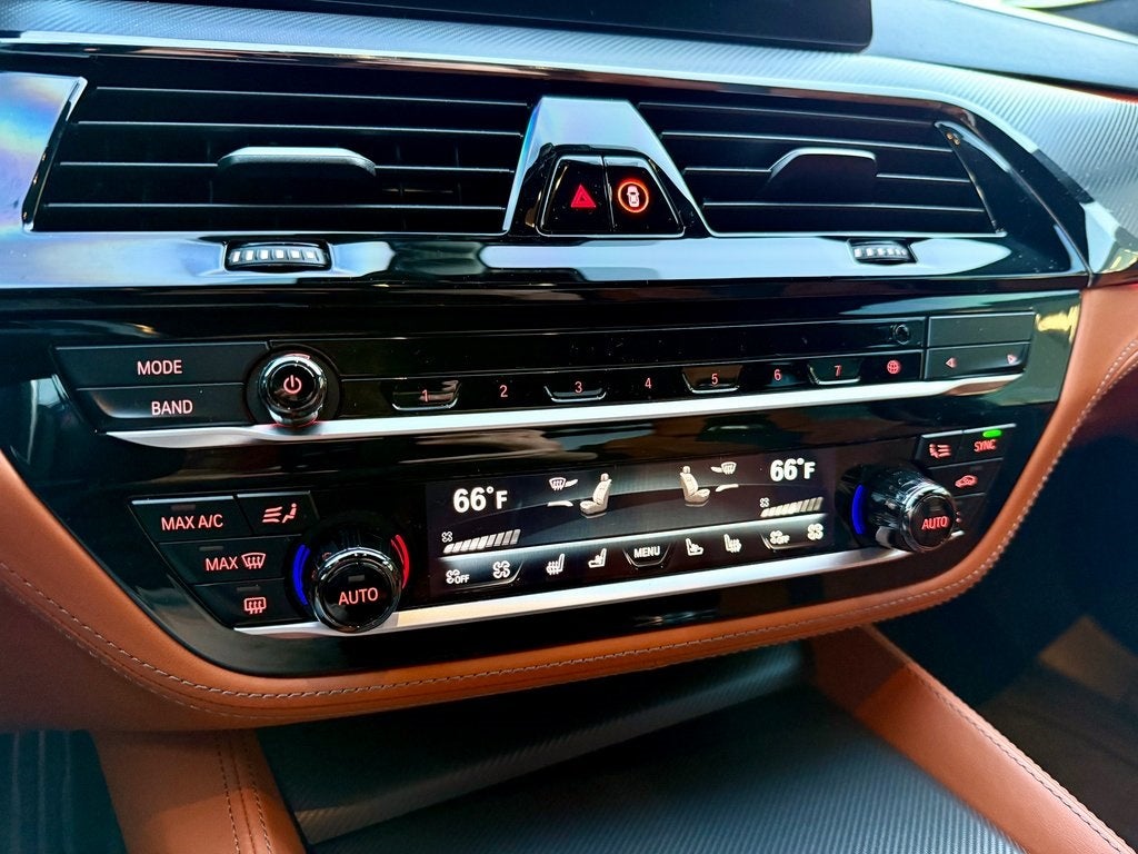 The track-focused Competition package outfits the M5 with aggressive 20-inch M Light-Alloy wheels, high-performance tires, and an M Sport exhaust system for an unmistakable soundtrack. Inside, you'll find full Merino leather upholstery with M-specific bolstering, a carbon fiber trim interior, and an Alcantara-wrapped steering wheel with shift paddles. The driver-centric cockpit features illuminated M front seats with massage functions, a head-up display, and a premium 16-speaker Harman Kardon surround sound system for every journey, from the track to the autobahn.