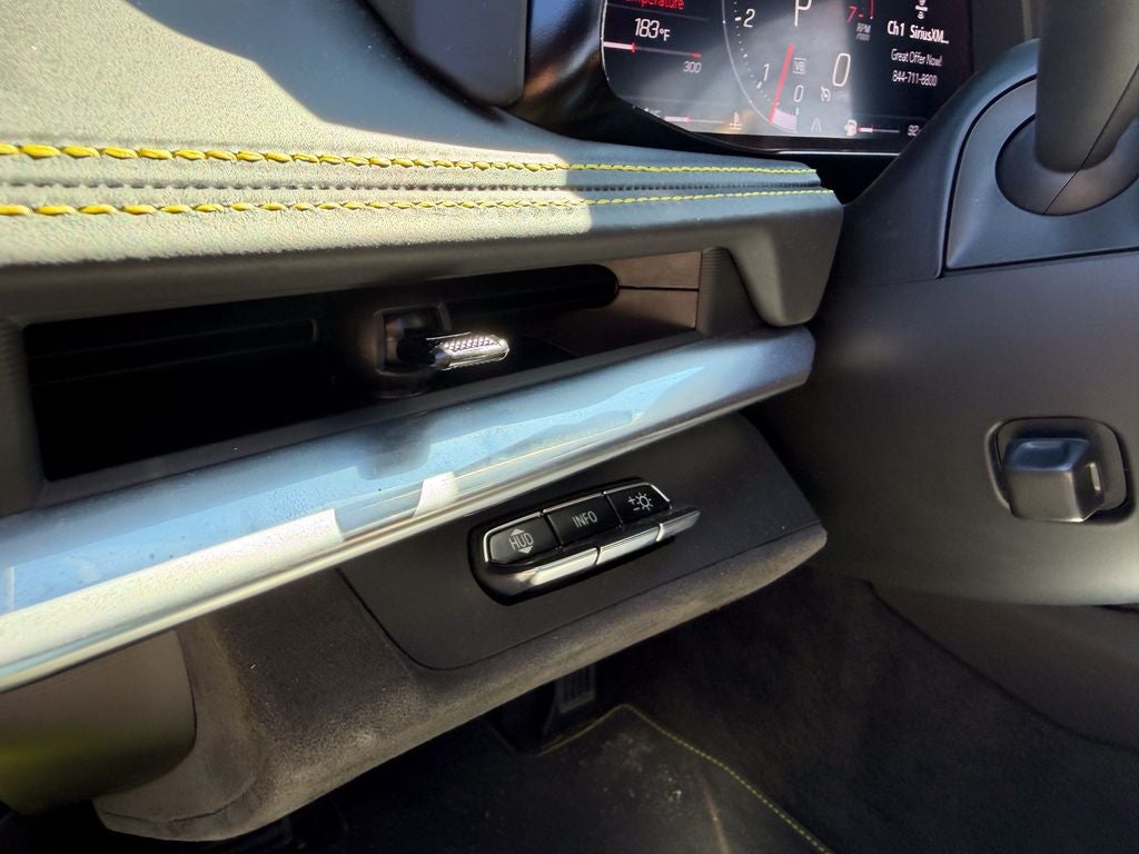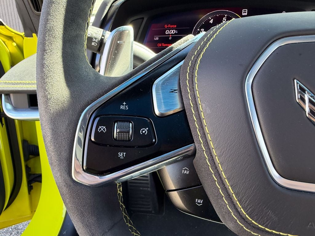 The premium 3LT trim outfits the Stingray with exclusive 19-inch (front) and 20-inch (rear) machined aluminum wheels wrapped in Michelin Pilot Sport all-season performance tires, a carbon fiber-inspired exterior package, and distinctive LED lighting. Inside, you'll find GT2 bucket seats upholstered in premium leather with competitive stitching, a leather-wrapped steering wheel with carbon fiber trim, and extensive genuine leather and microsuede interior accents. The driver-focused cockpit features a configurable 12-inch digital instrument cluster, dual-zone automatic climate control, and a premium 14-speaker Bose Performance Series audio system.