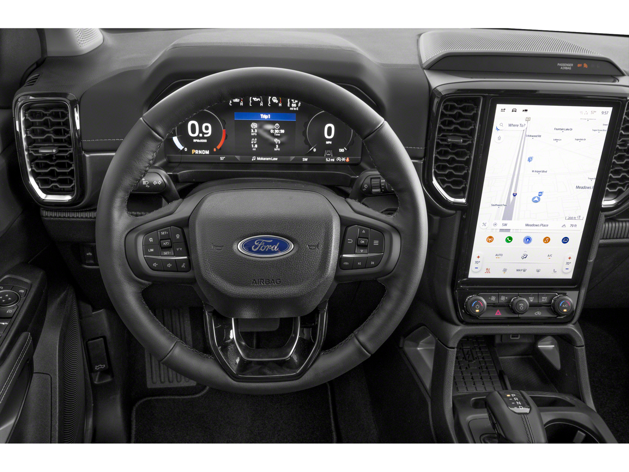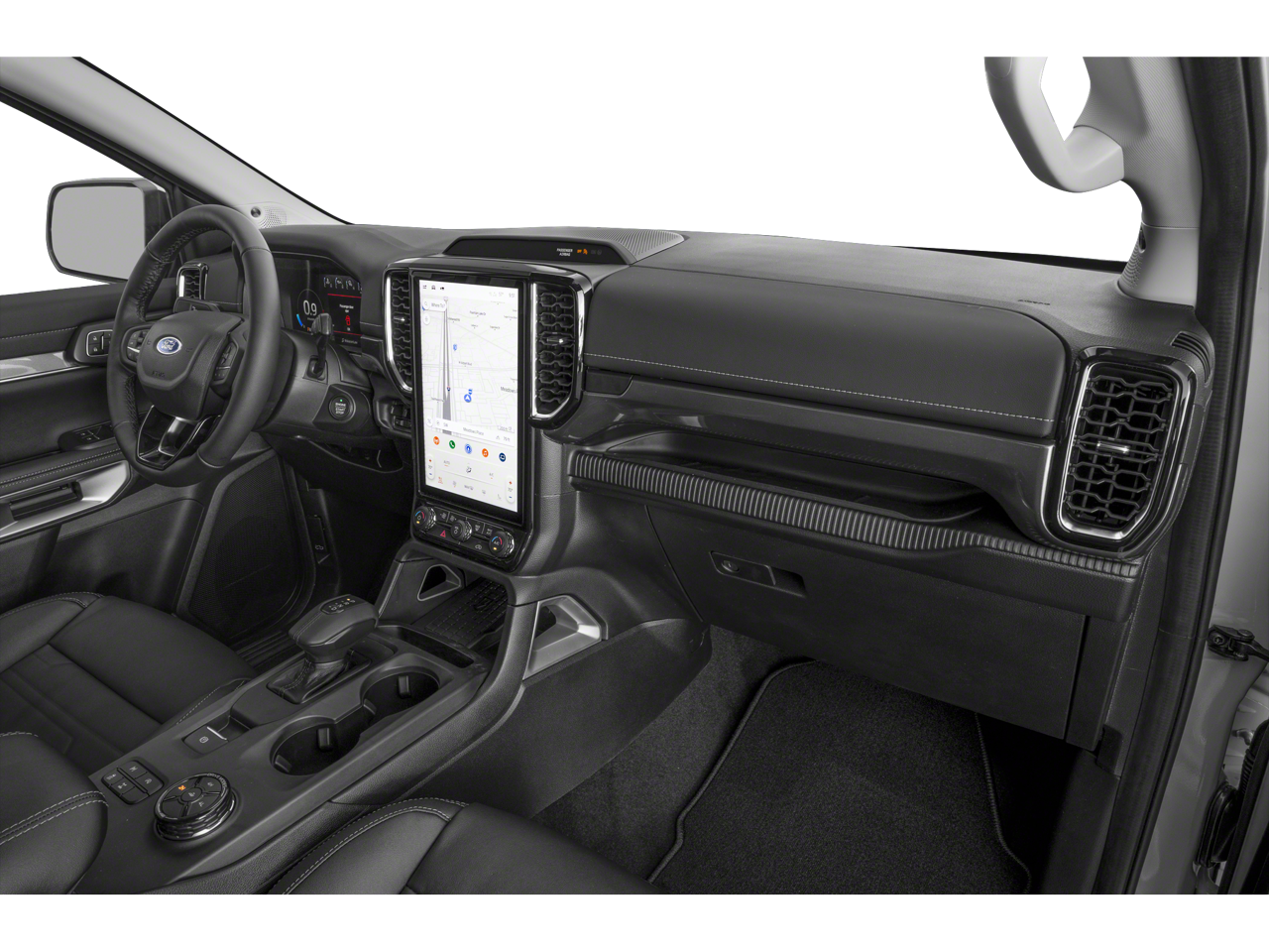 Advanced technology features include the SYNC 4 infotainment system with a 12-inch touchscreen, wireless Apple CarPlay and Android Auto compatibility, and a 4G LTE Wi-Fi hotspot. The Ranger Lariat also boasts the available Ford Co-Pilot360 suite of driver-assist technologies, an electronic-locking rear differential, and Ford's innovative Trail Control for enhanced control and confidence on any terrain.