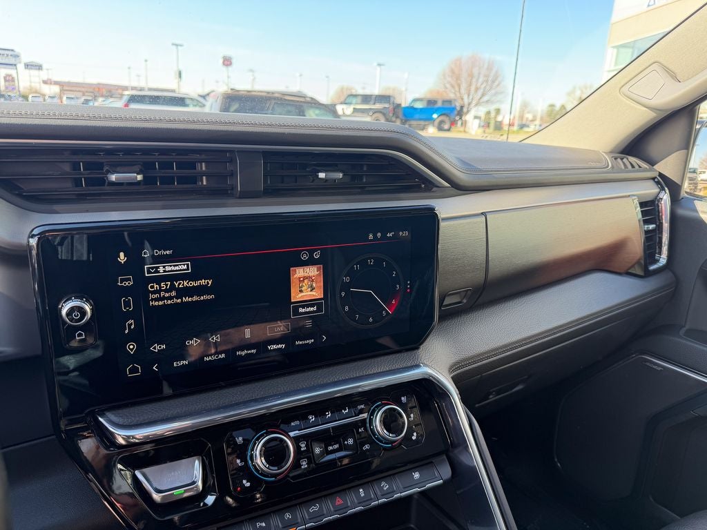 The pinnacle Denali trim outfits the Sierra with distinctive 22-inch ultra-bright machined aluminum wheels, all-season tires, and a bold chrome grille with signature LED lighting. Inside, you'll find premium perforated leather-appointed seating with heated and ventilated front rows, genuine open-pore wood trim, and a sueded microfiber headliner. The spacious Crew Cab offers best-in-class rear legroom and innovative features like the available MultiPro tailgate, along with dual-zone automatic climate control and a premium 12-speaker Bose Sound Series premium audio system.