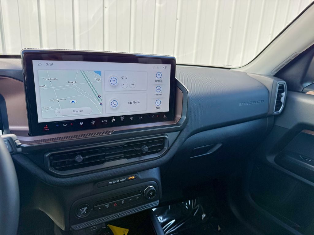 The upscale Outer Banks trim outfits the Bronco Sport with distinctive 18-inch carbonized gray-painted aluminum wheels, all-terrain tires, and signature LED lighting with unique Outer Banks badging. Inside, you'll find premium leather seating surfaces with heated front seats, a heated leather-wrapped steering wheel, and elegant interior accents. The versatile and spacious cabin offers ample cargo space, along with dual-zone automatic climate control and a 6-speaker audio system with SYNC 4 connectivity for every adventure.